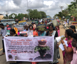 “வடக்கு கிழக்கு வலிந்து காணாமல் ஆக்கப்பட்ட உறவினர்களாகிய நாங்கள் யுத்தம் முடிவடைந்து 16 வருடங்களை கடந்தும் தொடர்ச்சியாக தொடர் கவனயீர்ப்பு போராட்டத்தை கிளிநொச்சி மாவட்டத்தில் கந்தசாமி கோவில் முன்றலில் 20.02.2017 அன்று ஆரம்பிக்கப்பட்ட போராட்டம் இன்றுடன் 3287 நாட்களைக் கடந்தும் எந்த வித பதிலும் நீதியும் கிடைக்கப் பெறவில்லை, நாம் தள்ளாடும் முதிர்ந்த வயதிலும் நாம் தொடர்ந்தும் போராடி வருகின்றோம், பிள்ளைகளைத் தேடி அலையும் தாய்மார்களாகிய எங்களின் கண்ணீருக்கு என்ன பதில்?